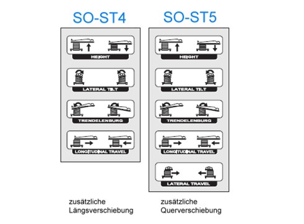 - Verstellung: +/- Trendelenburg