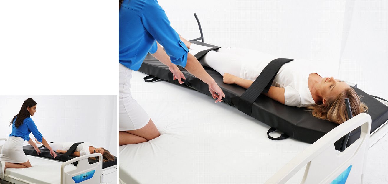 erhältliche Transfermatratze mit Griffen für den Patiententransfer und