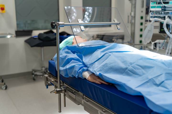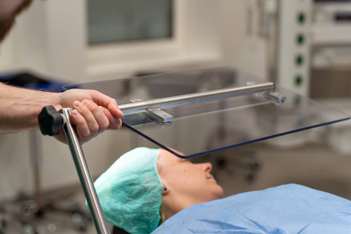 Der Roboterschutz ist transparent, sodass der Zustand des Patienten jederzeit kontrolliert werden kann.